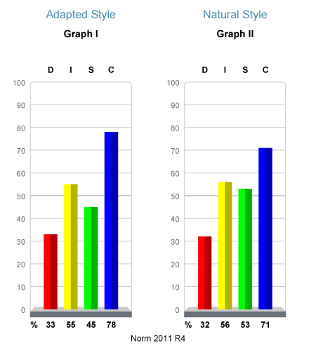 C- Conscientiousness: Person places emphasis on quality and accuracy, expertise, competency. Enjoys independence, objective reasoning, wants the details, fears being wrong.